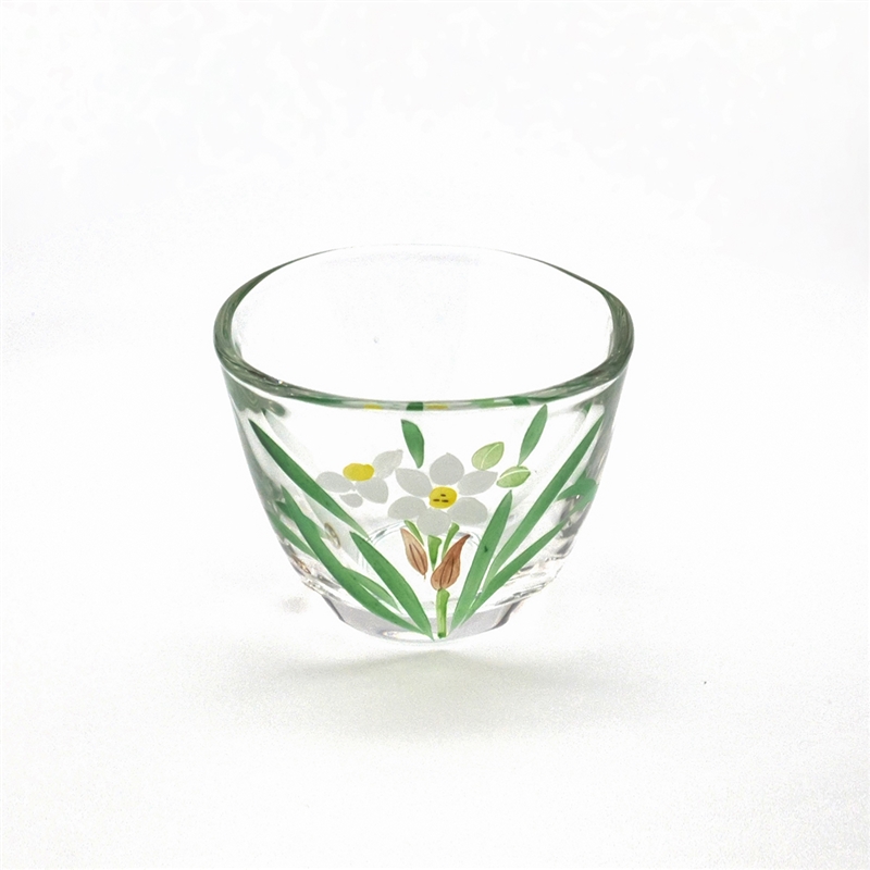京絵付けガラス碗 花茶人 水仙