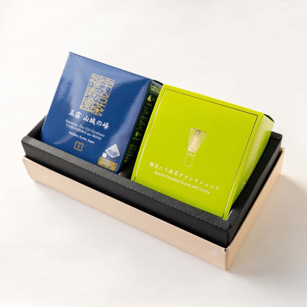 碾茶と抹茶をたっぷり練り込み、フィアンティーヌと合わせた、 サクッと香ばしいクランチショコラをおつくりしました。
