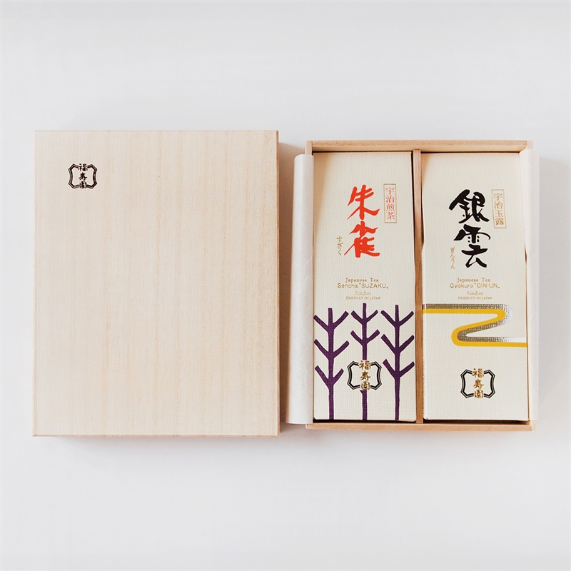 ・宇治玉露銀雲 45g袋 豊かな香りとまったりとした旨味をお楽しみいただける高品質の玉露です。 ・宇治煎茶朱雀 45g袋 爽やかな香りと味をお楽しみいただける上質の煎茶です。