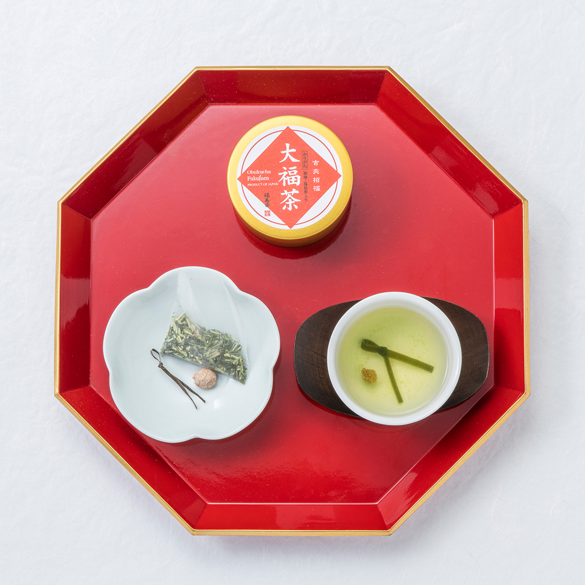 京都の故事にならい、元旦に新年の無病息災を祈念して福梅・福昆布を添えてお茶をいただくのが大福茶です。