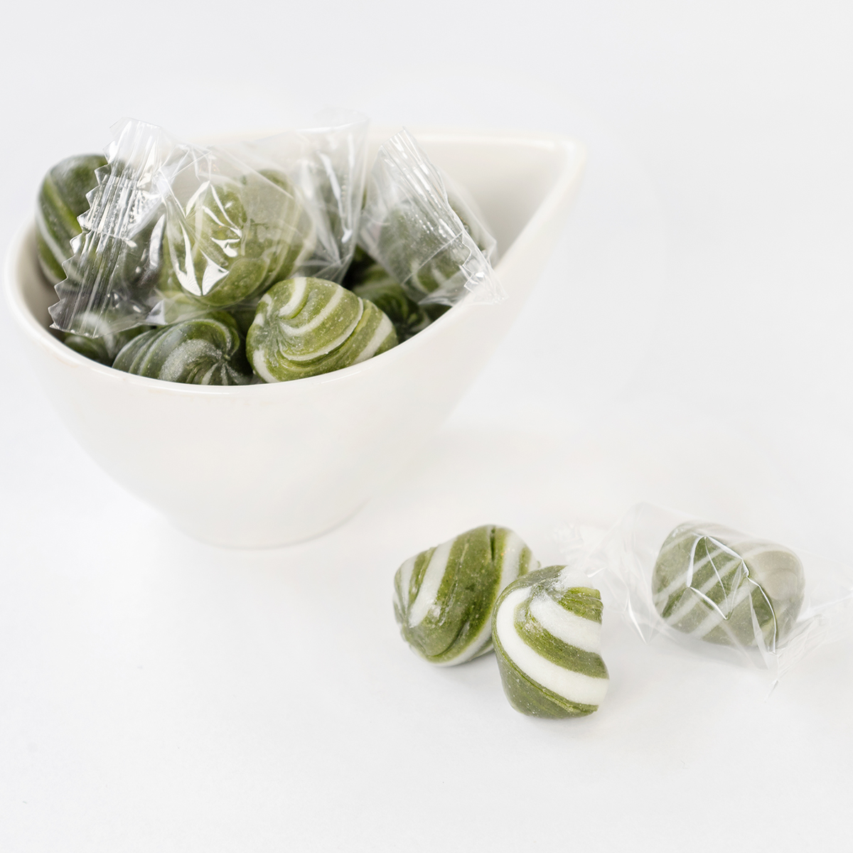 宇治抹茶とミルクの色鮮やかな二色をねじり合わせ、ころんとしたかわいらしい飴に仕上げました。抹茶のほろ苦さをミルクの優しい甘味が包み込み、口の中でゆっくりとほどけてゆきます。4つ入ったギフトセット。