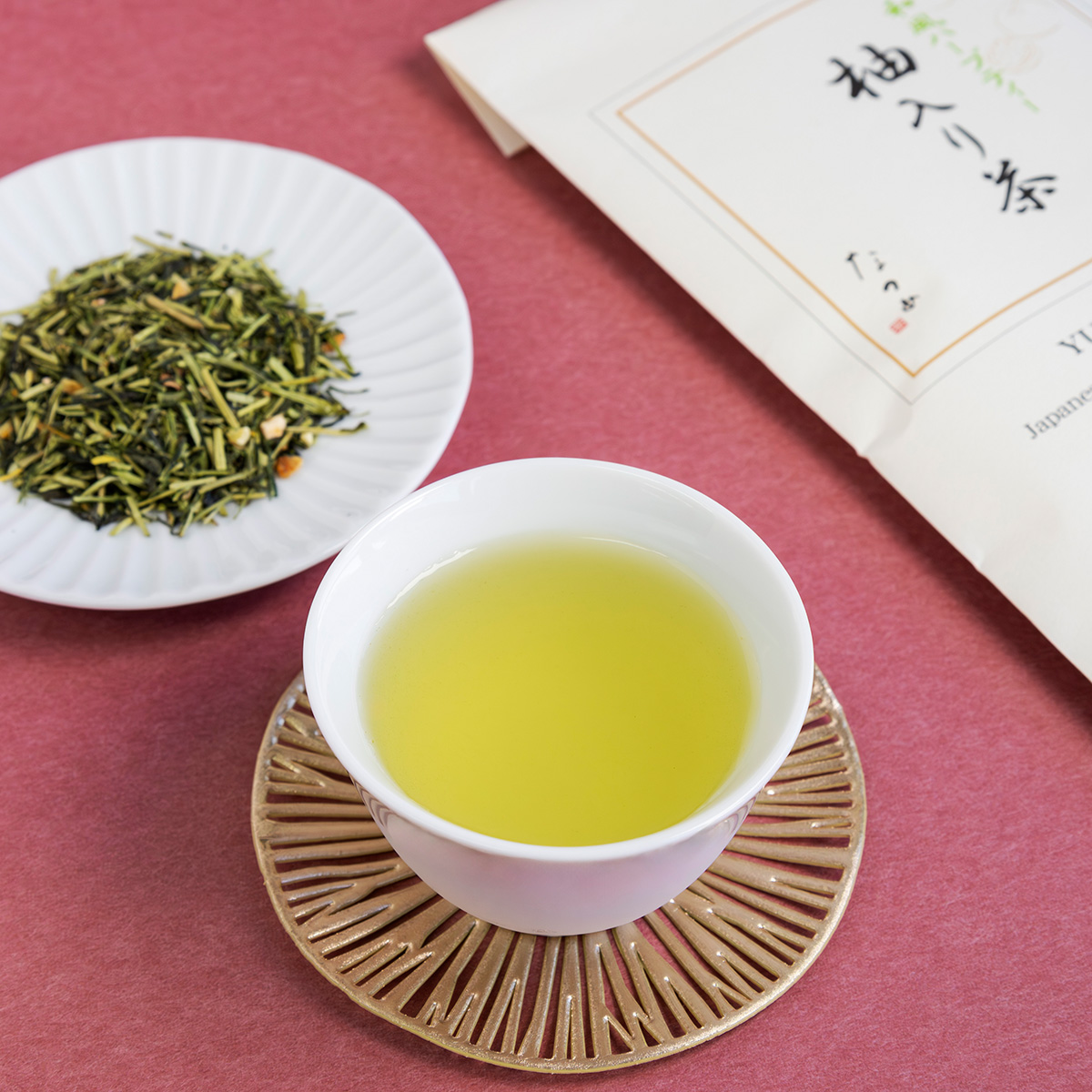 茎茶とゆずの果皮をブレンドして仕上げたこのお茶は、ゆずの甘酸っぱい香りに、 茎がもつ独特の旨味のハーモニーを味わっていただけます。