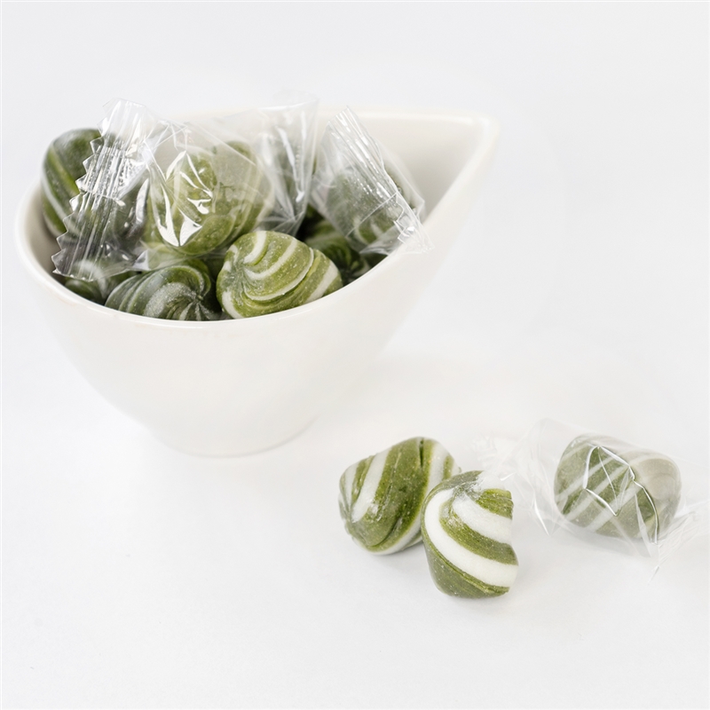 宇治抹茶とミルクの色鮮やかな二色をねじり合わせ、ころんとしたかわいらしい飴に仕上げました。抹茶のほろ苦さをミルクの優しい甘味が包み込み、口の中でゆっくりとほどけてゆきます。