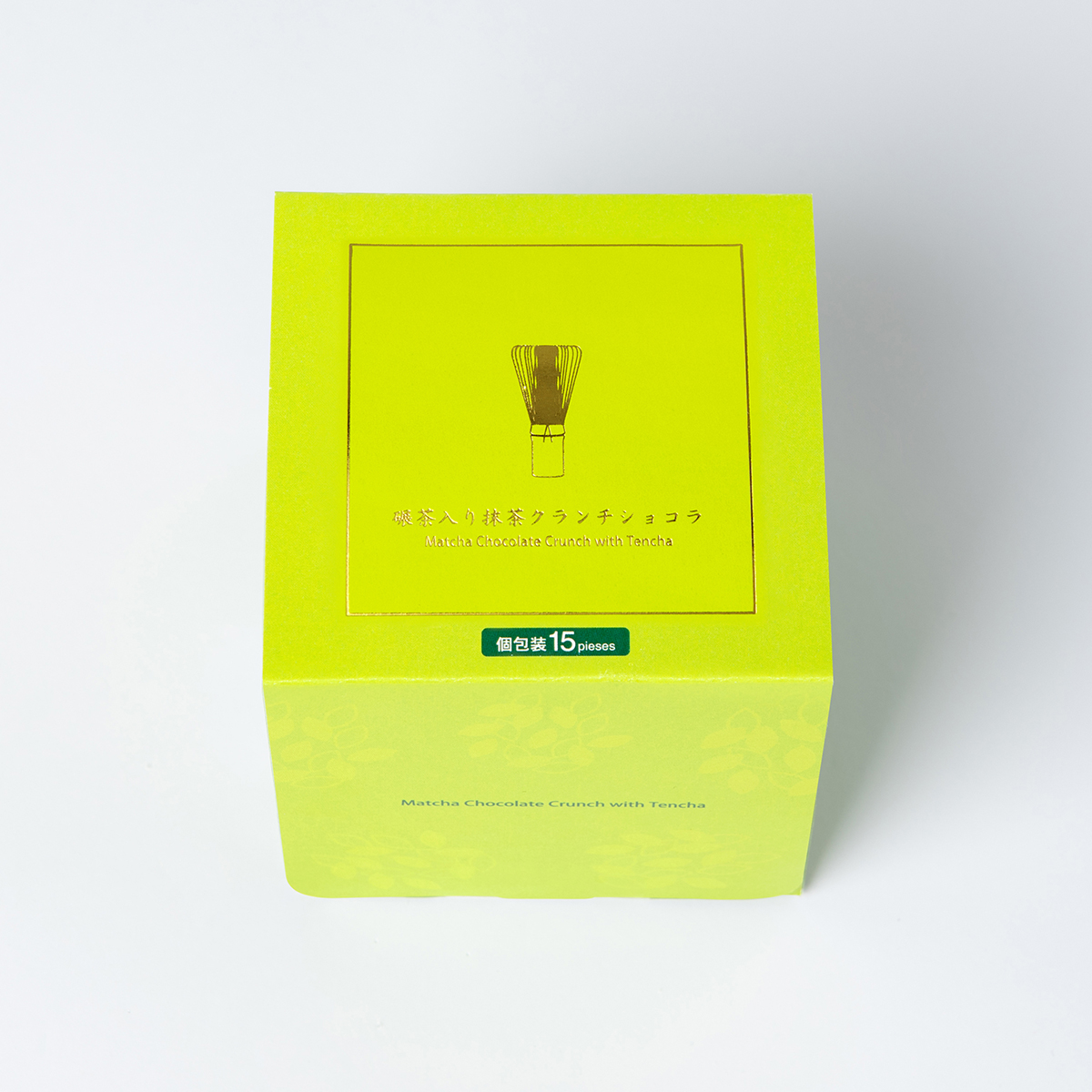 当社の商品は、いずれも特徴の異なる茶葉を掛け合わせ、その茶葉自身の魅力を最大限に 引き出せるよう工夫を凝らしています。また、チョコレートに配合できる限界量ぎりぎりの茶葉を配合することで 、ここでしか味わえないような、濃いお茶感を感じていただけるよう仕上げています。